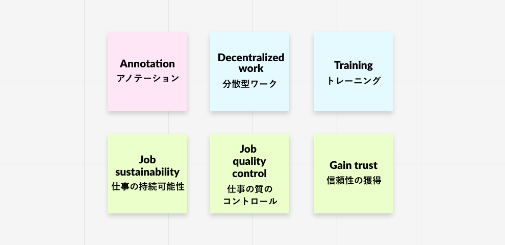トレハンは高齢者と雇用機会のマッチングを、アノクリヤは障害者がIT企業から仕事を受けるモデルの構築を目指し広島とインドでそれぞれ活動していました。共通のビジョンをもった彼らは、これまでの活動の経緯や葛藤を共有するところから議論をスタートし、既存の仕事や職場環境は必ずしもマイノリティの能力や強みを考慮したものではないこと、そして、仕事の継続や信頼の獲得が日印共通の課題になっていることを特定しました。その結果、チームはマイノリティが従事できる仕事を見つけるのではなく、新しく仕事を作り出すことに可能性を見出し、AI構築に必要なアノテーションのタスクを高齢者や障害者の雇用機会に結びつける新たなアイディアを生み出しました。
